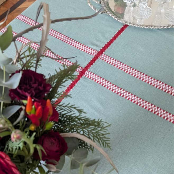 Tovaglia in 100% cotone, Tessuta al telaio di legno e impreziosita da giuntura interamente fatta a mano